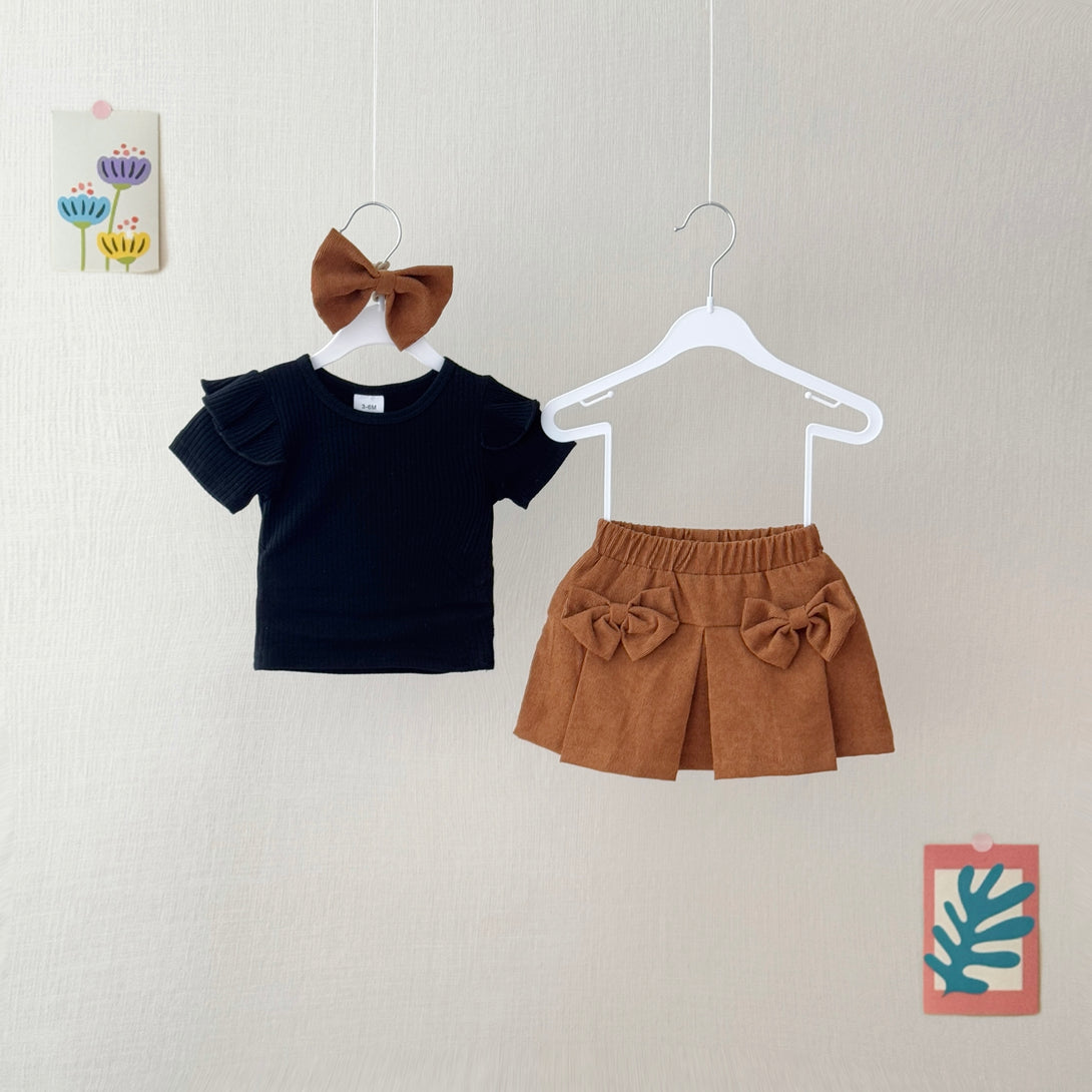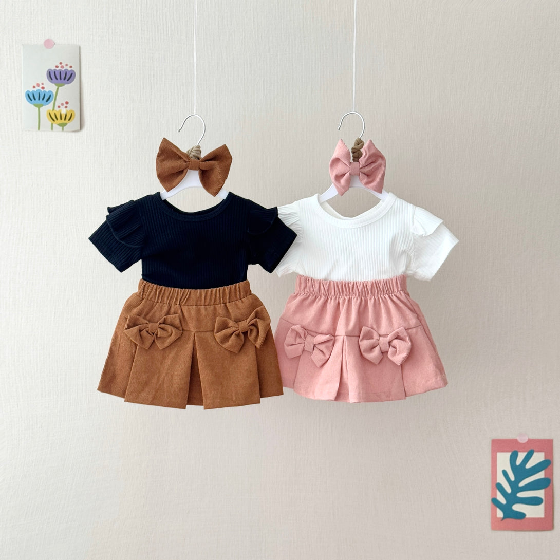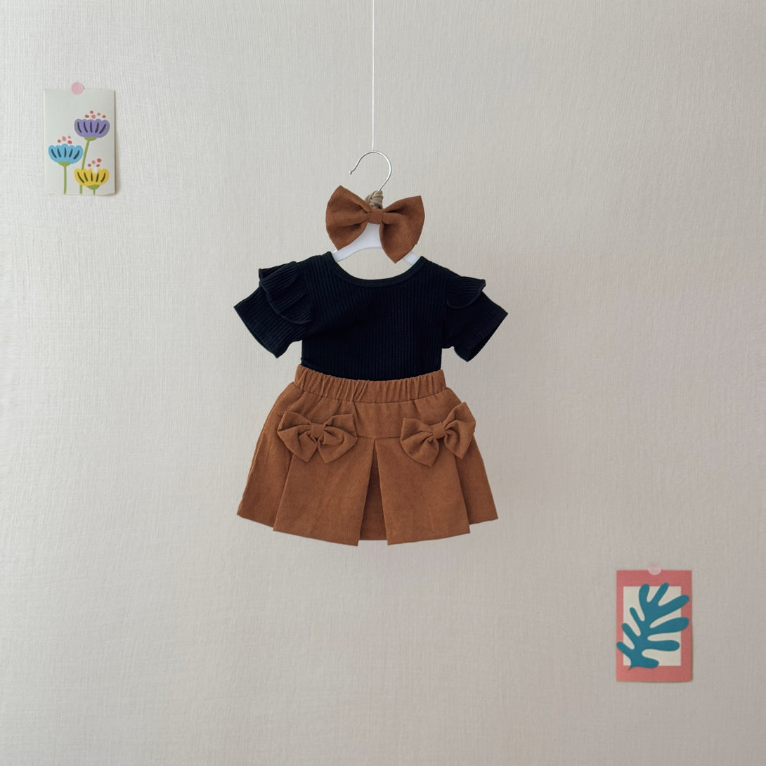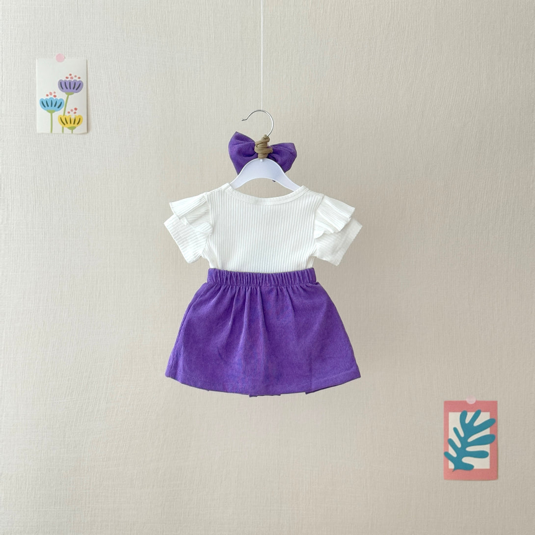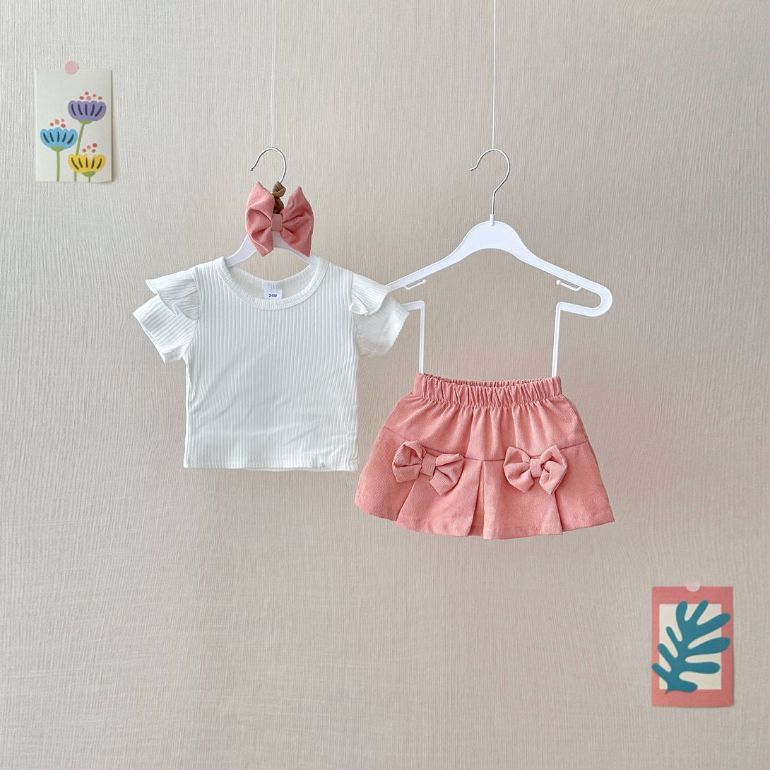 Este conjunto incluye un top blanco acanalado con delicadas mangas con vuelo, que le aportan un toque de elegancia. La falda plisada de pana, disponible en morado, rojo, rosa y marrón, está adornada con encantadores lazos, lo que la hace a la vez divertida y sofisticada. La tela suave y transpirable garantiza comodidad, mientras que la diadema con lazo a juego le da un toque encantador. Perfecto para salidas, fiestas o ropa informal, ¡este conjunto aporta estilo y comodidad al armario de tu pequeña!