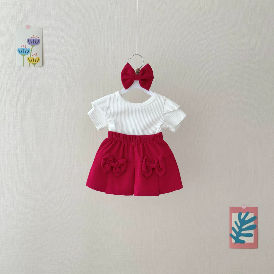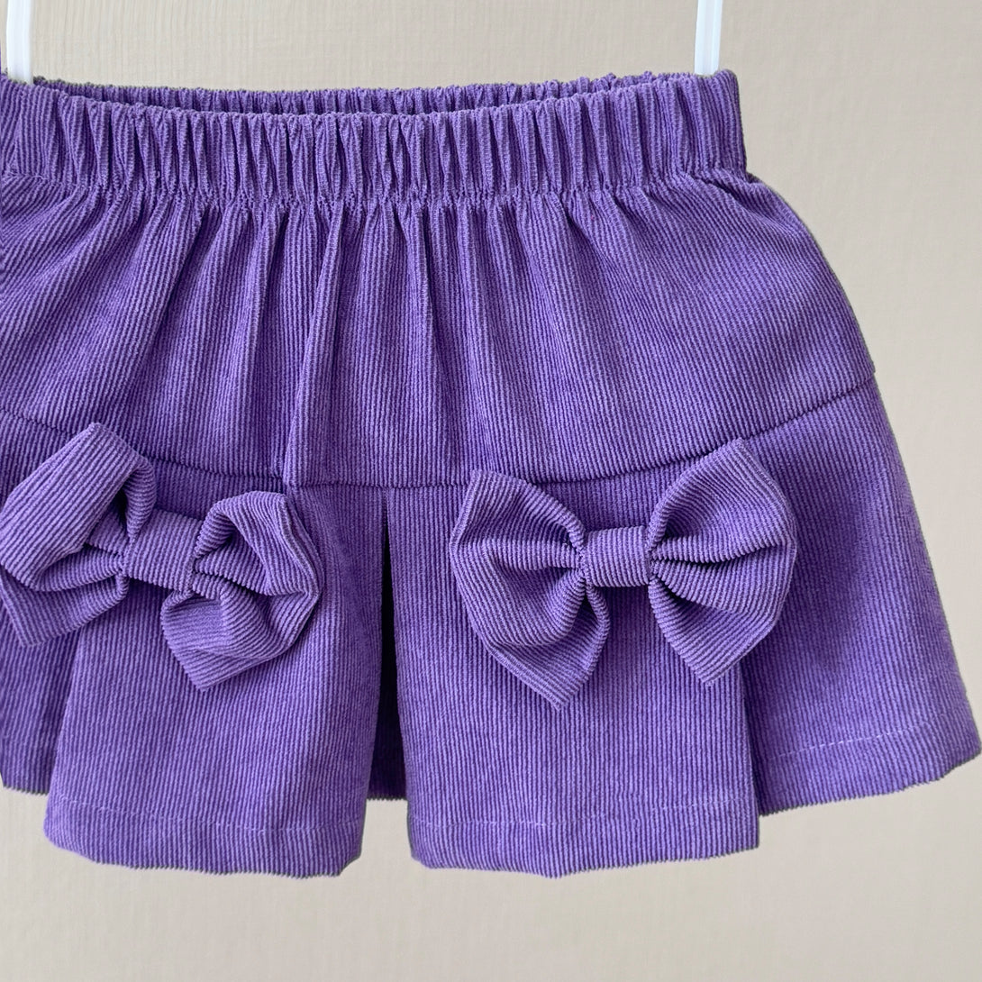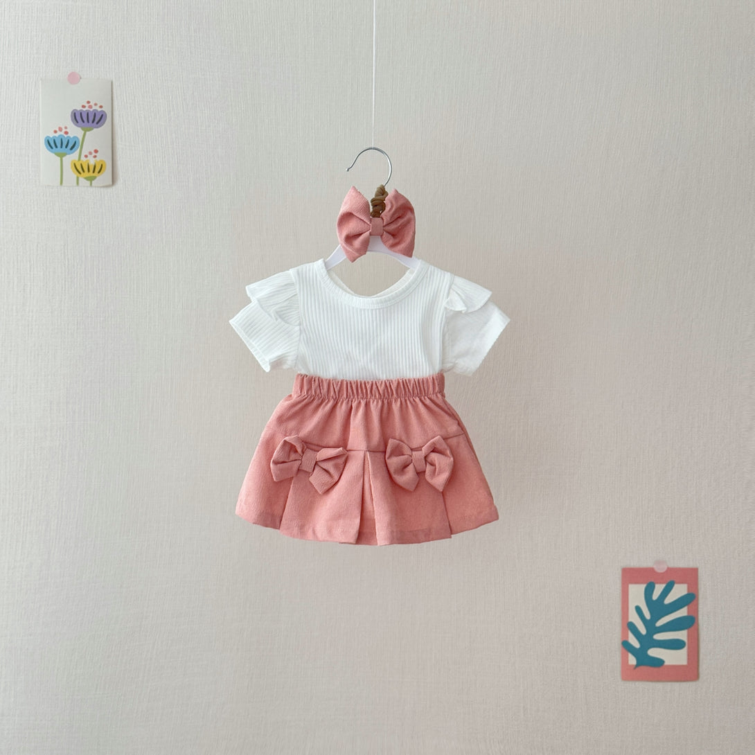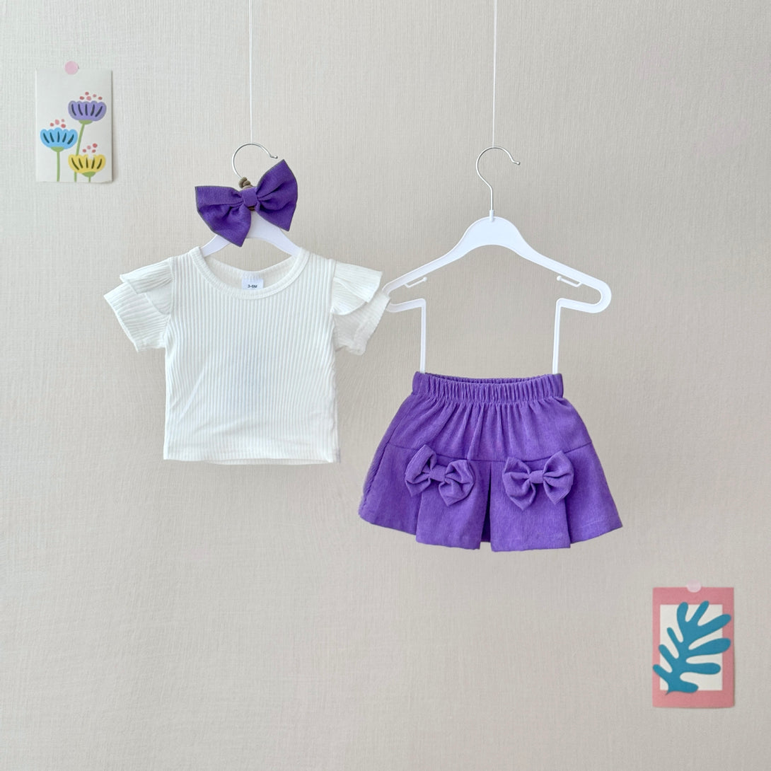 Este conjunto incluye un top blanco acanalado con delicadas mangas con vuelo, que le aportan un toque de elegancia. La falda plisada de pana, disponible en morado, rojo, rosa y marrón, está adornada con encantadores lazos, lo que la hace a la vez divertida y sofisticada. La tela suave y transpirable garantiza comodidad, mientras que la diadema con lazo a juego le da un toque encantador. Perfecto para salidas, fiestas o ropa informal, ¡este conjunto aporta estilo y comodidad al armario de tu pequeña!