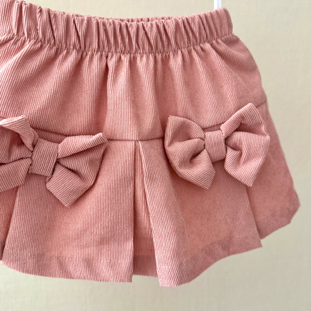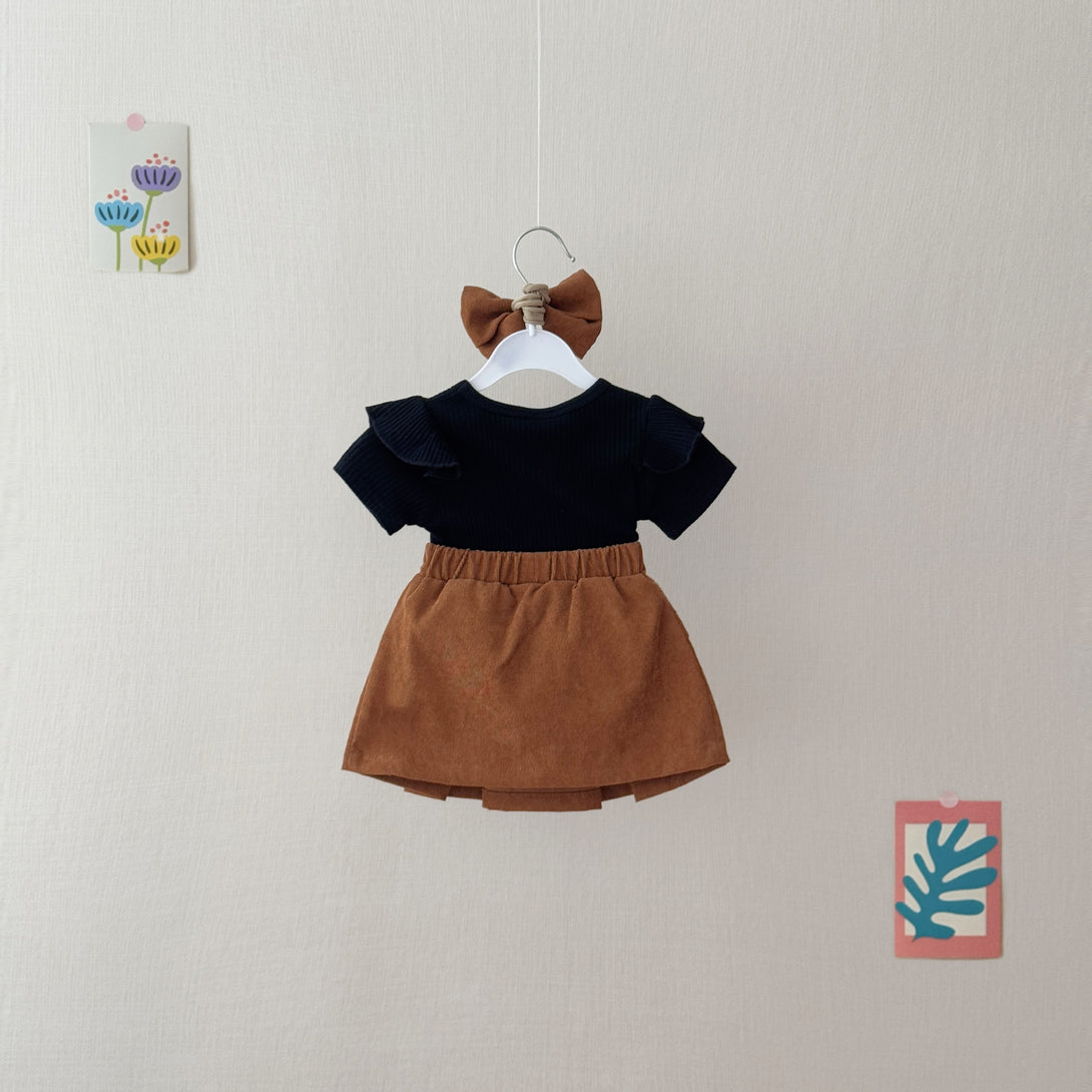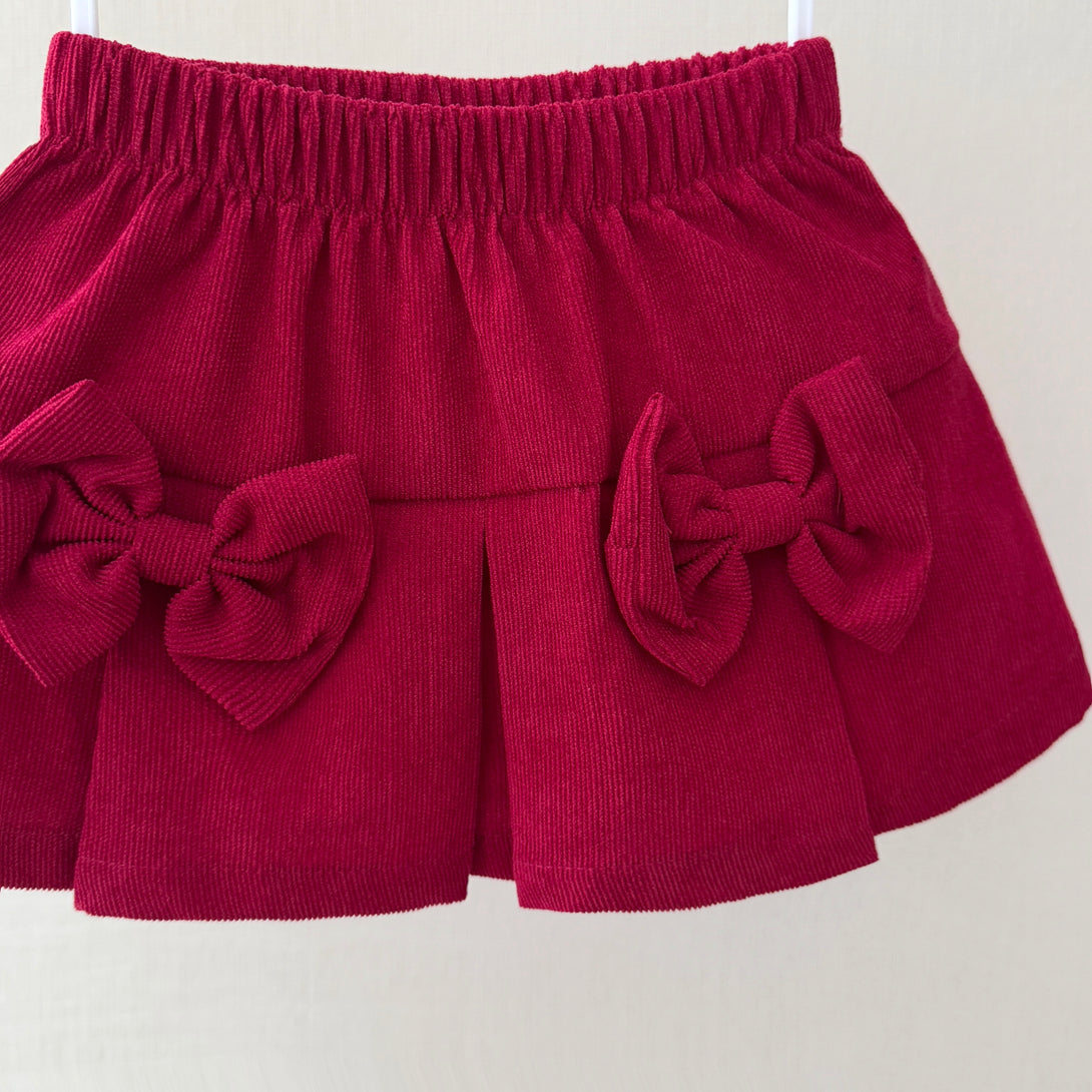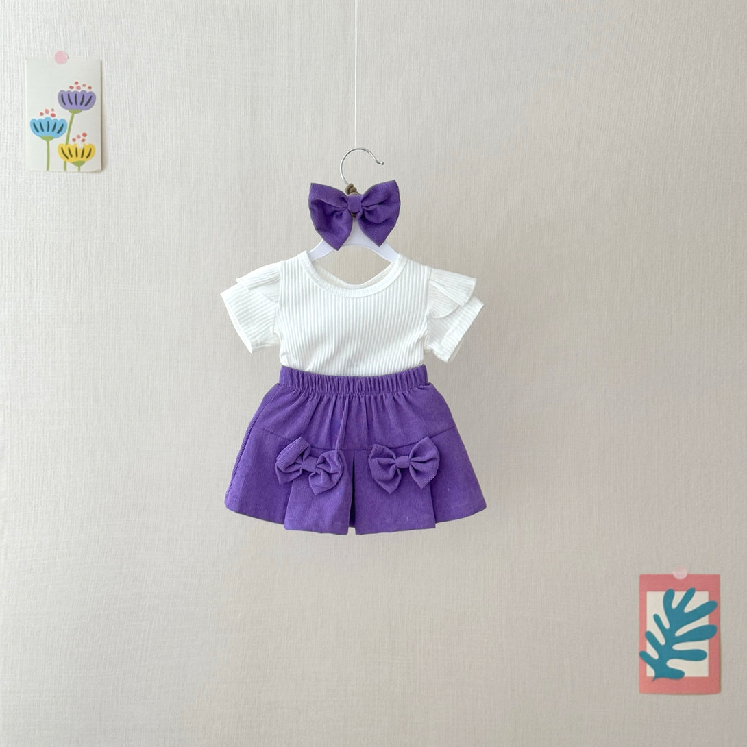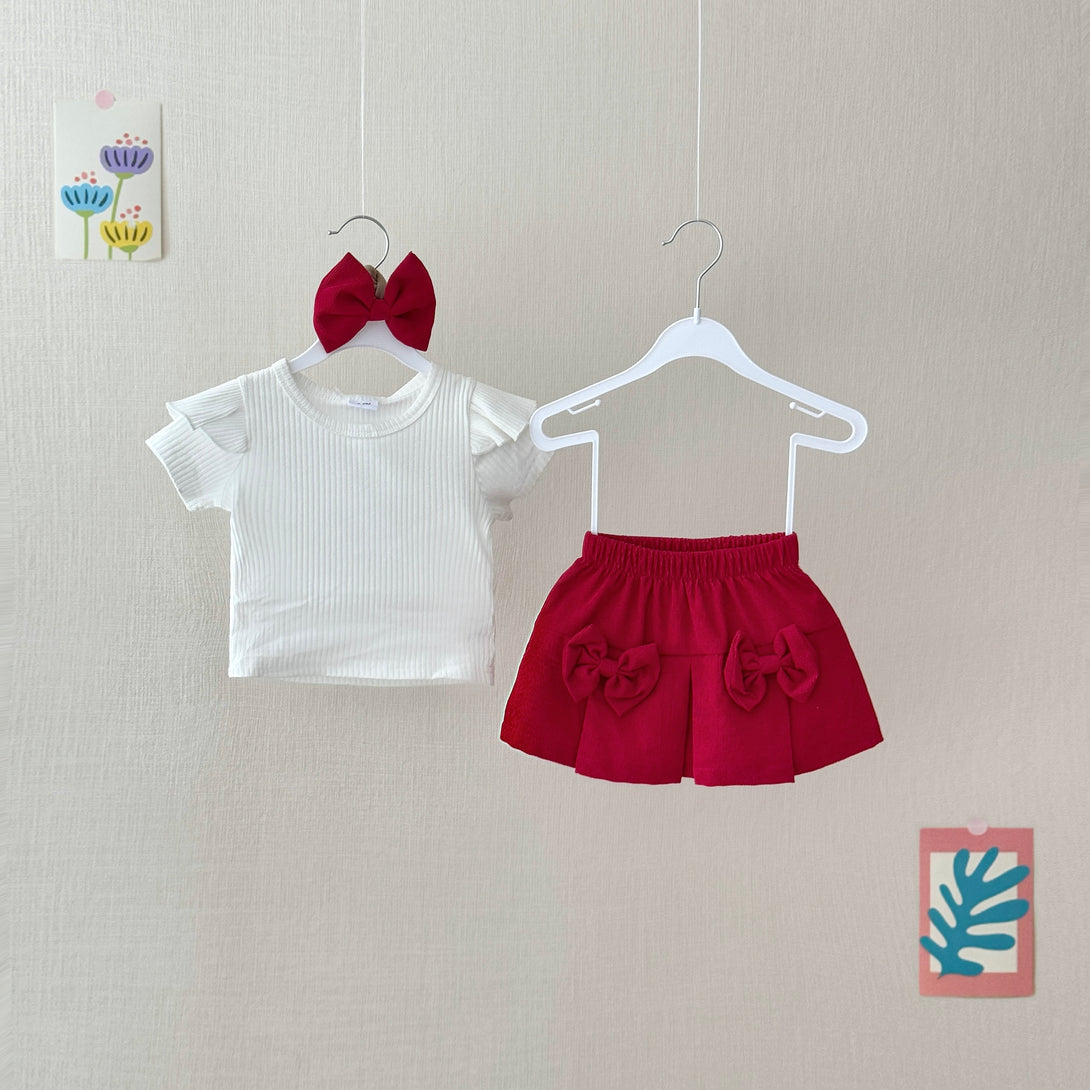 Este conjunto incluye un top blanco acanalado con delicadas mangas con vuelo, que le aportan un toque de elegancia. La falda plisada de pana, disponible en morado, rojo, rosa y marrón, está adornada con encantadores lazos, lo que la hace a la vez divertida y sofisticada. La tela suave y transpirable garantiza comodidad, mientras que la diadema con lazo a juego le da un toque encantador. Perfecto para salidas, fiestas o ropa informal, ¡este conjunto aporta estilo y comodidad al armario de tu pequeña!
