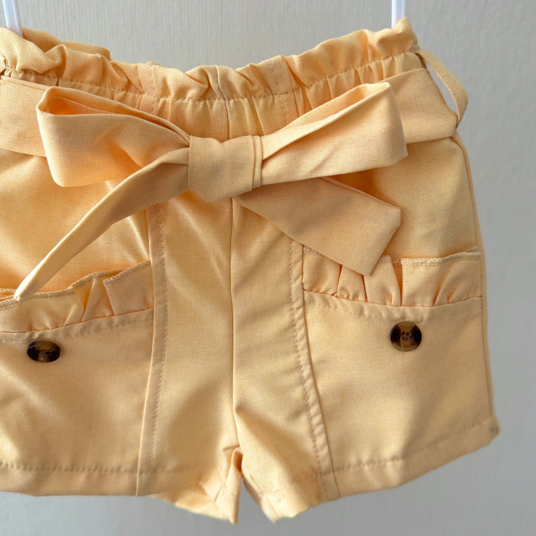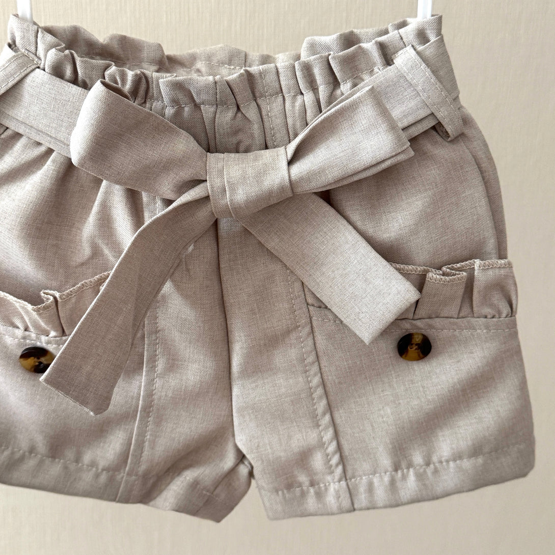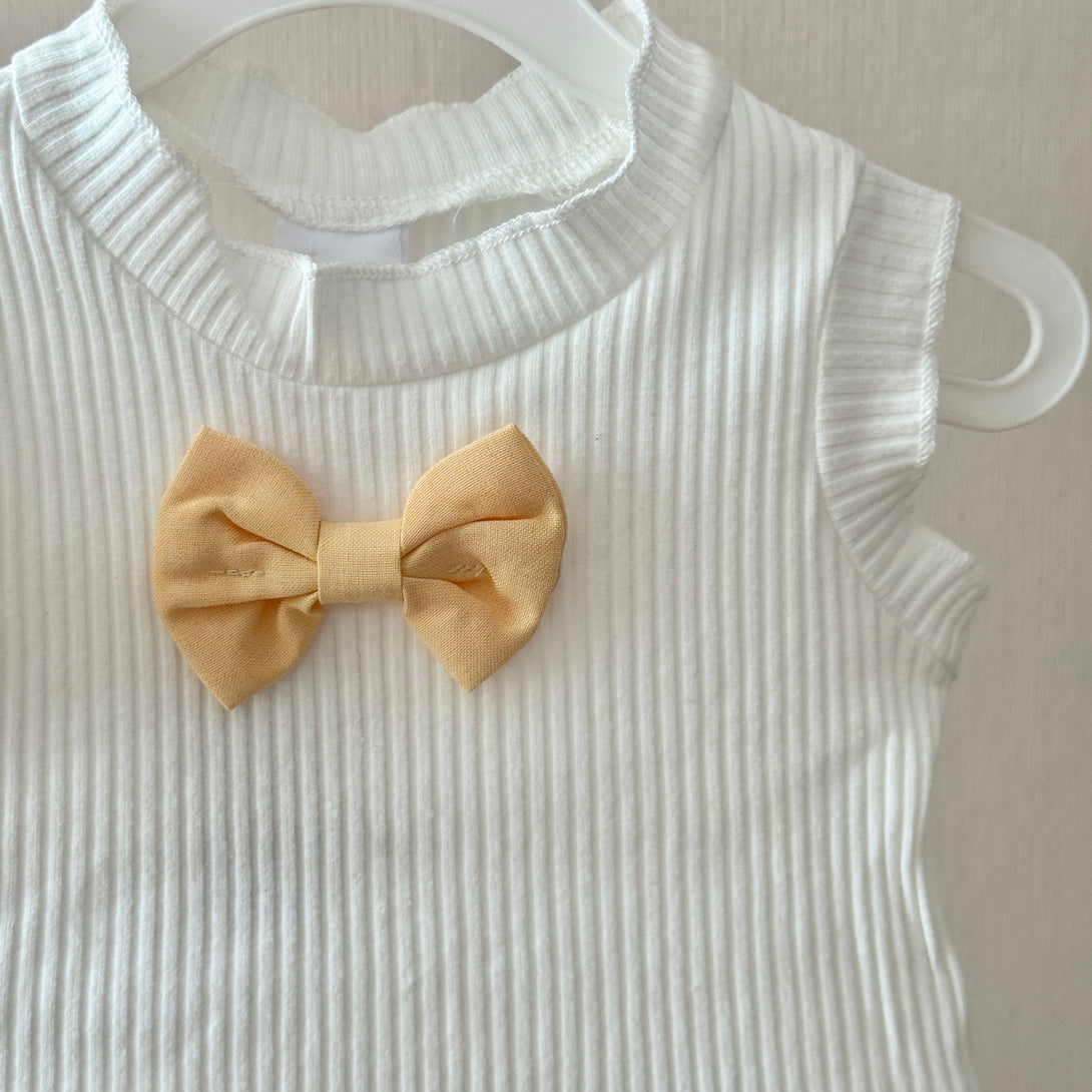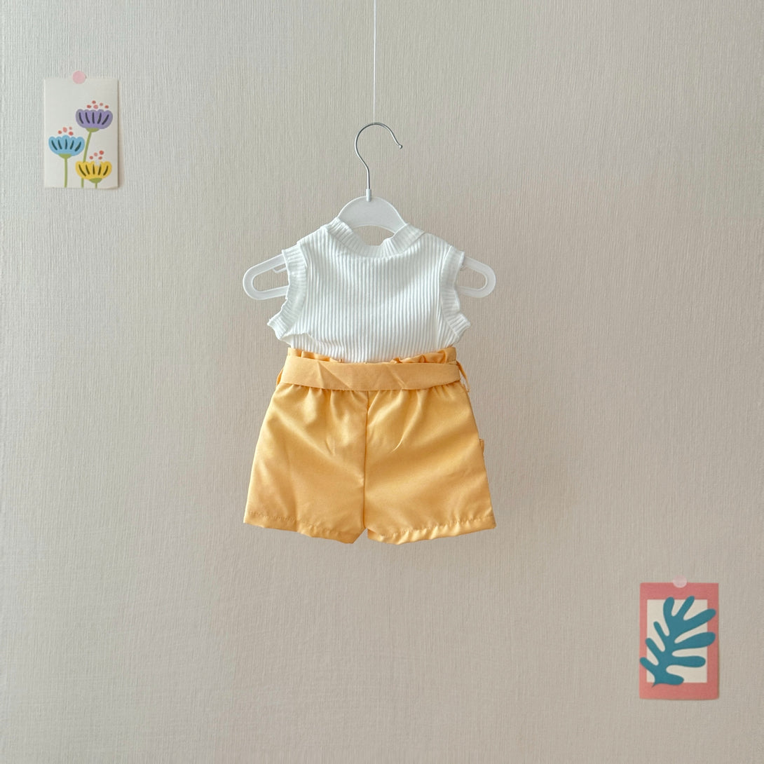The sleeveless tops feature a ribbed texture, giving them a snug and stretchy fit. Each top is embellished with a cute bow at the front, adding a touch of sweetness. The shorts have a wide - waistband with a large, decorative bow that not only enhances the aesthetic but also allows for an adjustable fit. The shorts also include ruffled pockets with button details, which are both functional and stylish. Made from soft and breathable fabrics, these sets are ideal for active little ones, ensuring they stay comfortable while looking adorable.