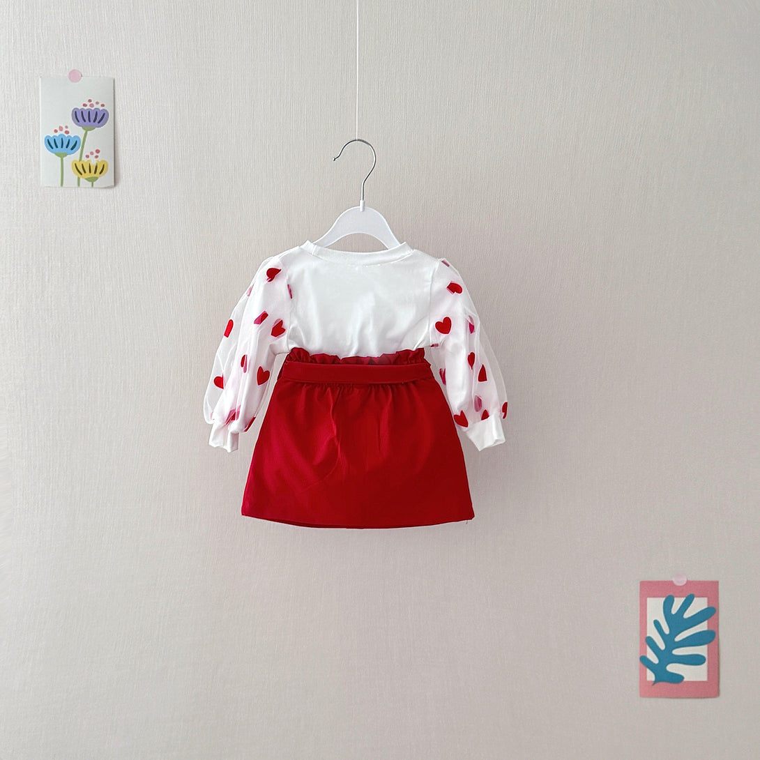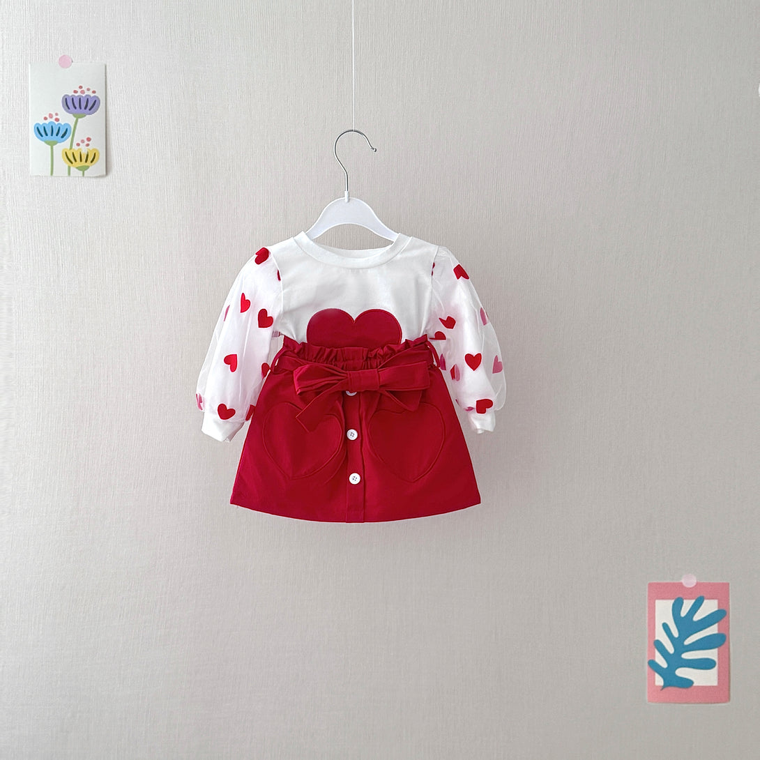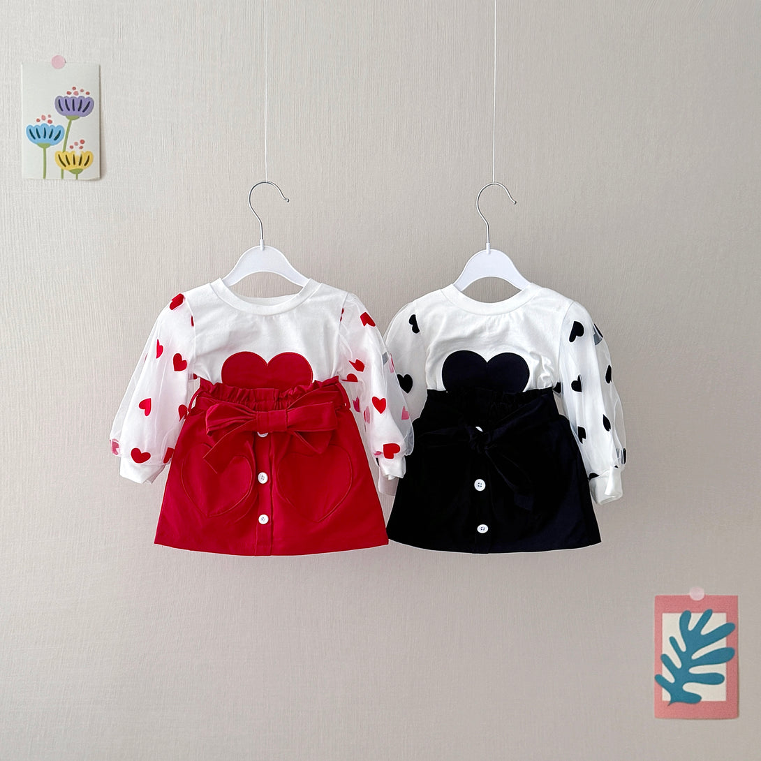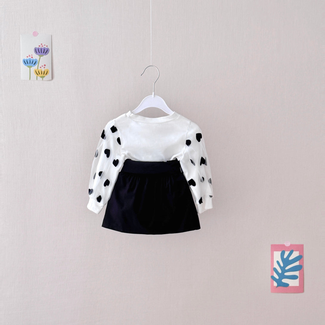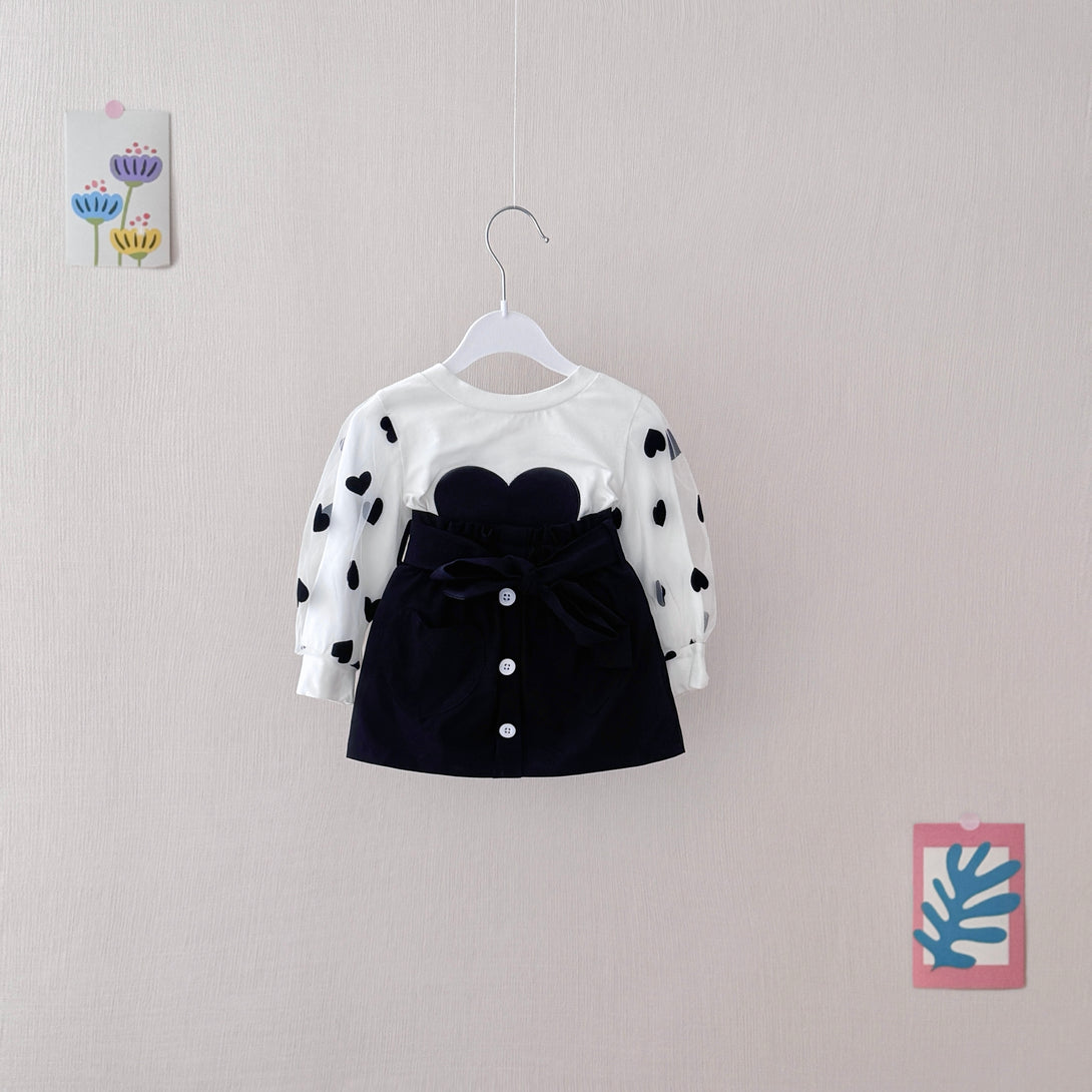 The white lace long-sleeve top in this set is made from a soft and comfortable fabric with hearts on the sleeves, and a large heart in the center of the top for added cuteness. Paired with it is a lovely short skirt with a large bow belt, heart-shaped pockets and white buttons. The skirt is made from durable and comfortable material for everyday wear. Ideal for creating a cute and romantic look.