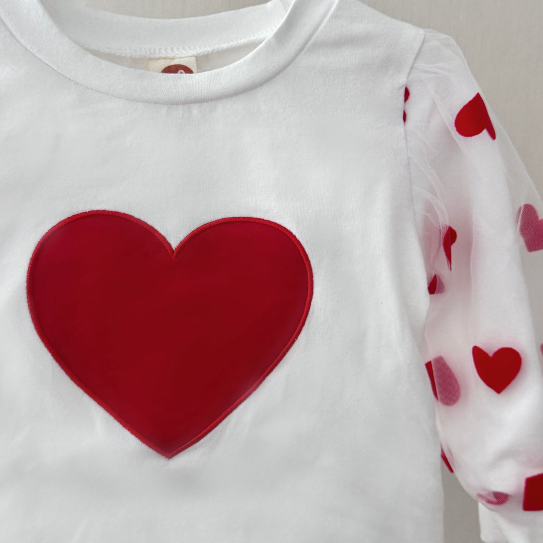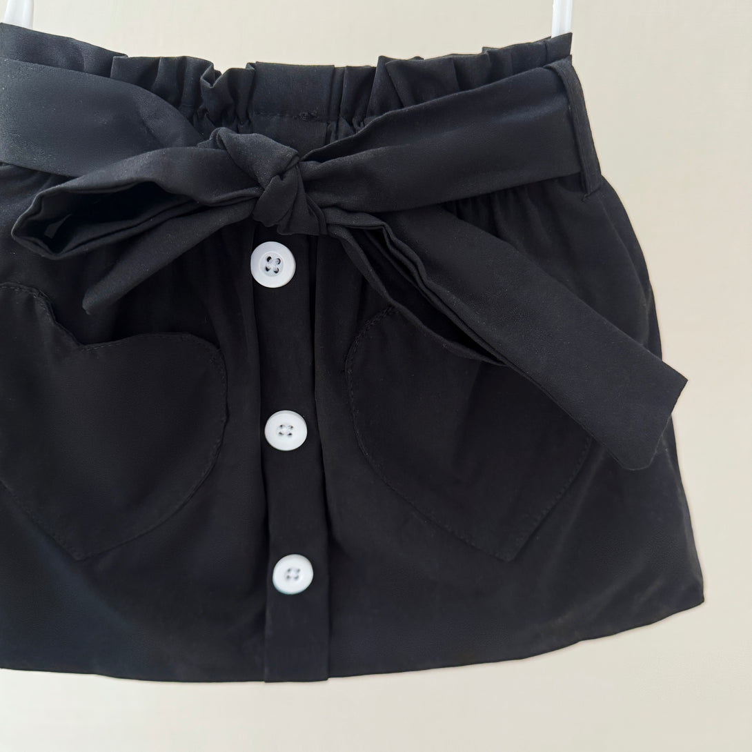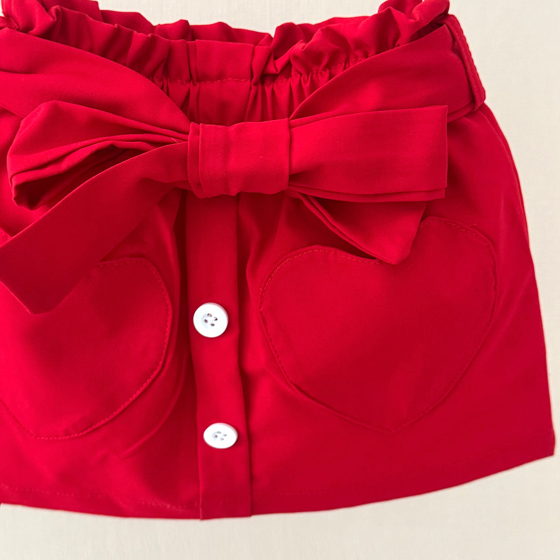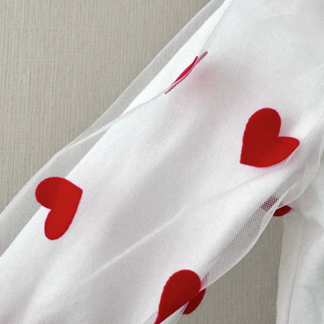 The white lace long-sleeve top in this set is made from a soft and comfortable fabric with hearts on the sleeves, and a large heart in the center of the top for added cuteness. Paired with it is a lovely short skirt with a large bow belt, heart-shaped pockets and white buttons. The skirt is made from durable and comfortable material for everyday wear. Ideal for creating a cute and romantic look.